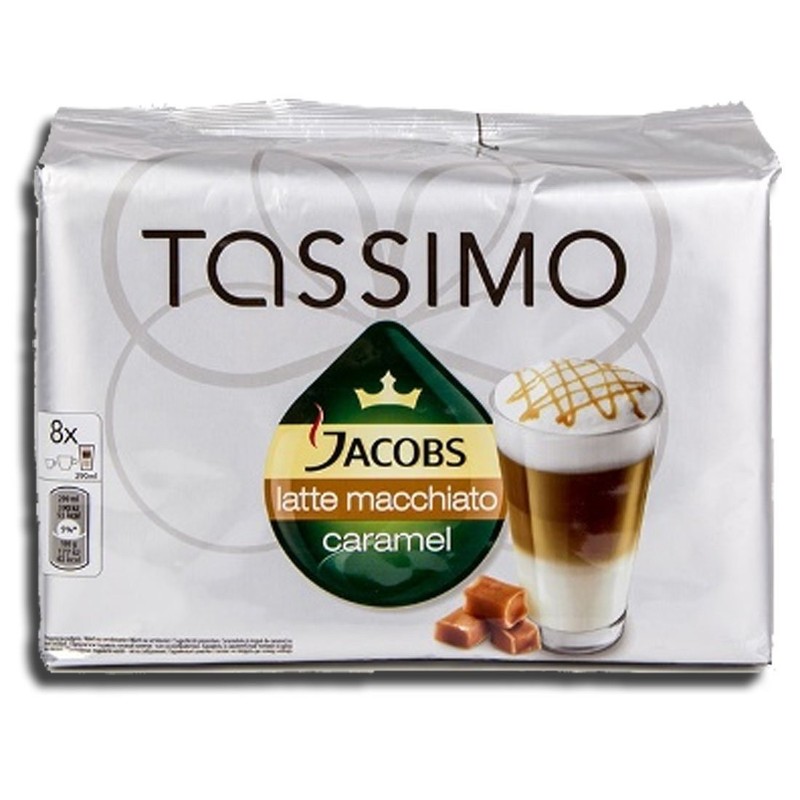 Factory Sealed Pack Tassimo T-Disc Pods Jacobs Caramel Latte Macchiato Coffee - 8 Servings - Includes Creamer Pods