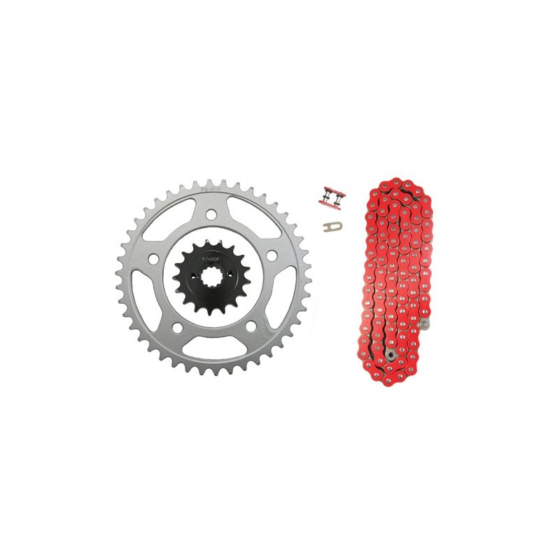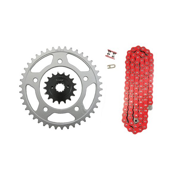 - Included is: (1) 525 x 122 red, o-ring chain (1) Master link (clip style) (1) 17 tooth front sprocket (1) 41 tooth rear sprocket