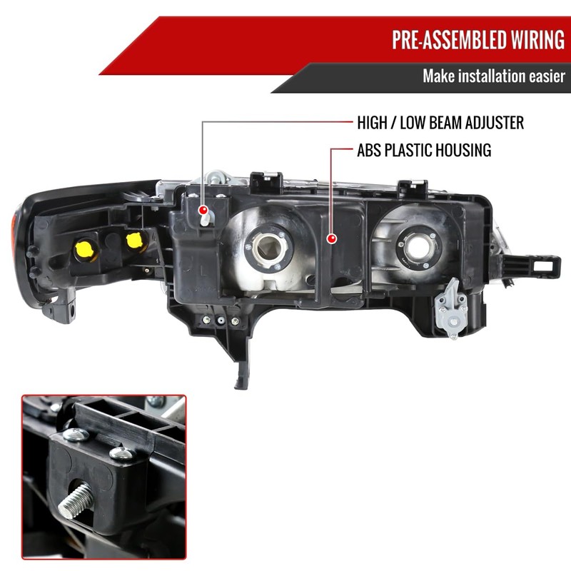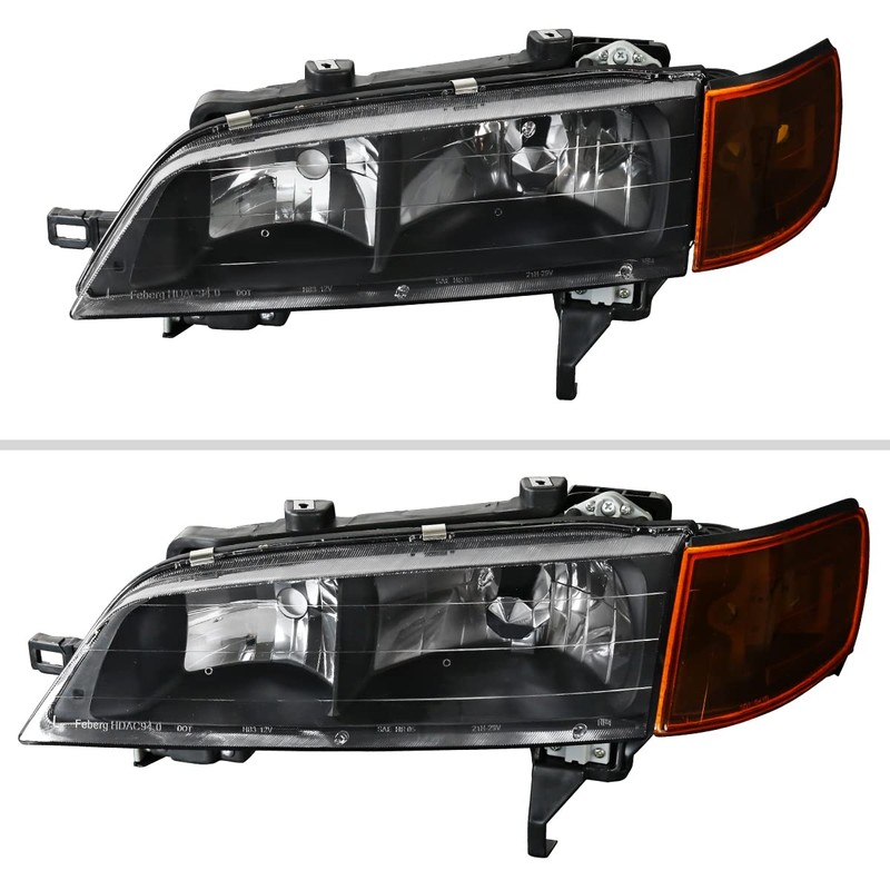 Factory Style Headlights & Amber Corner Lights (Matte Black Housing/Clear Lens) Made for and Compatible with 1994-1997 Honda Accord