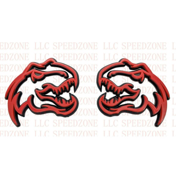 Factotum PAIR Dinosaur T-Rex TRX Emblem Badge fits Dodge Ram Logo Red Black