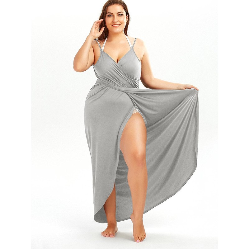Fadalo Plus Size Spaghetti Strap Cover Up Beach Backless Wrap Long Dress (XX-Large, Light Grey)