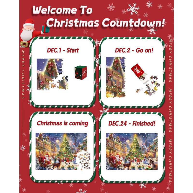 - Festival Home Decor - Our interesting advent calendar puzzle 2024 is a great choice as Christmas Gifts to decorate home. Once the puzzle is complete, display it on your home wall to enhance home decor and add extra holiday cheer. Celebrate the season with this beautiful decoration!