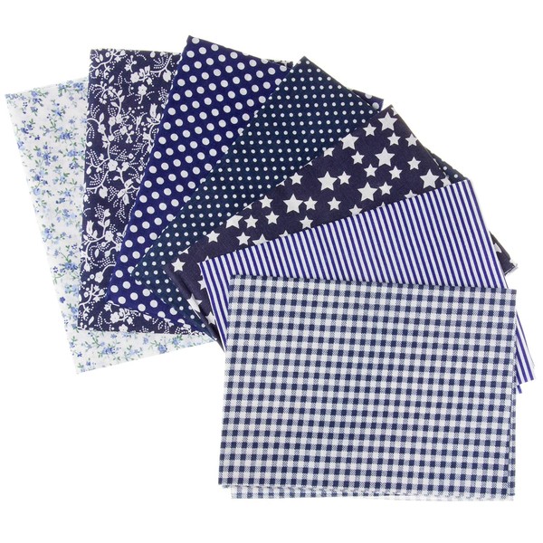 Faden & Nadel Fabric Set: 7 Patchwork Fabrics, 100% Cotton, 50 x 50 cm, Colour: Blue