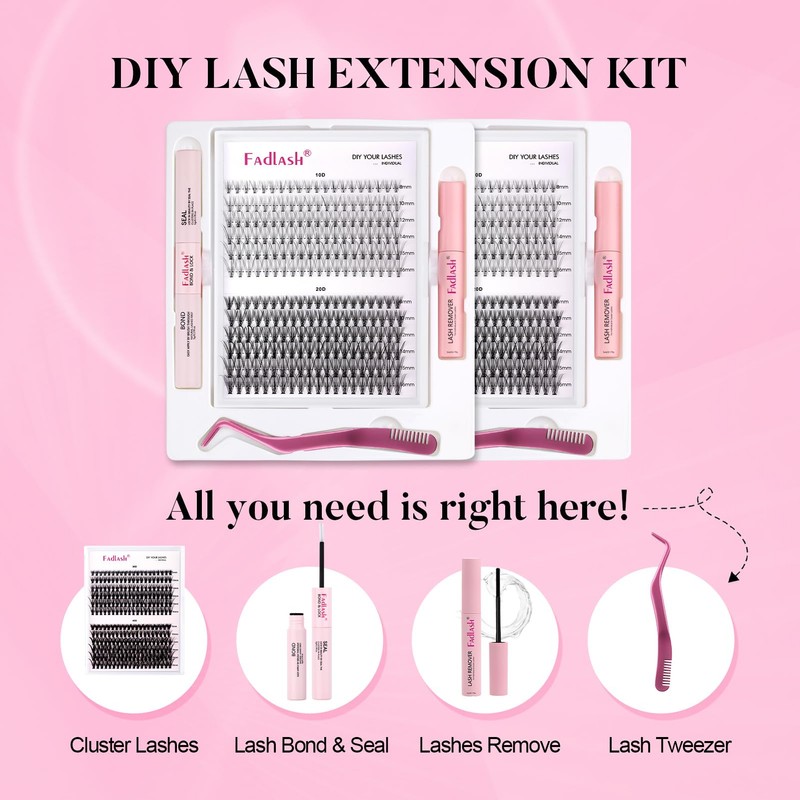 - Specification: You will get a FADLASH eyelash extension kit which includes one tray of individual lashes, one lash tweezer, one lash bond and seal, one lash remove. Everything you need is right here. Using this lash extension kit will be more convenient and will save time. Just try!
