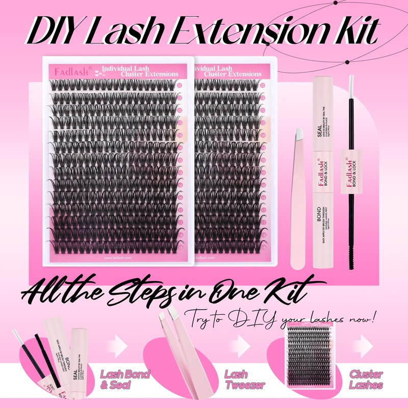 - Specifications: You will receive a FADLASH eyelash extension kit, which includes 1 separate tray of eyelashes, 1 eyelash remover, 1 brush pliers, and 1 eyelash bonding and sealing. Everything you need is here. Using this eyelash extension kit will be more convenient and save time. Give it a try!