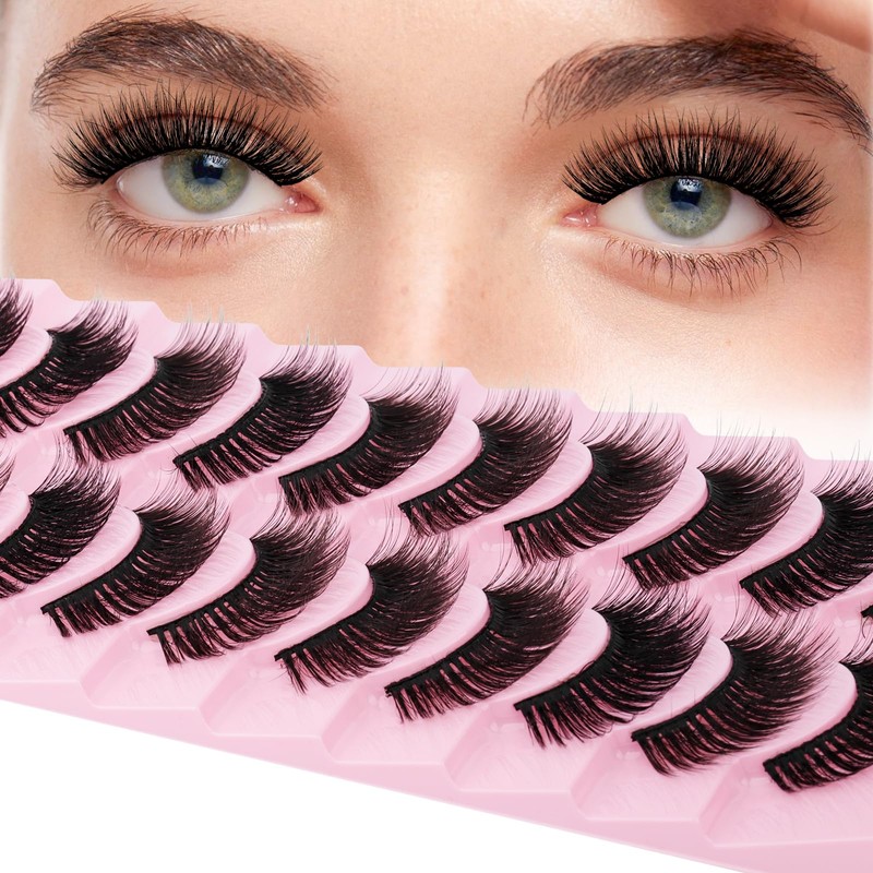 FADLASH False Eyelashes 10 Pairs Faux Mink Lashes Wispy Fake Eyelashes Natural Look Volume Soft Handmade Cat Eye Fake Lashes Strips (LDM-22)