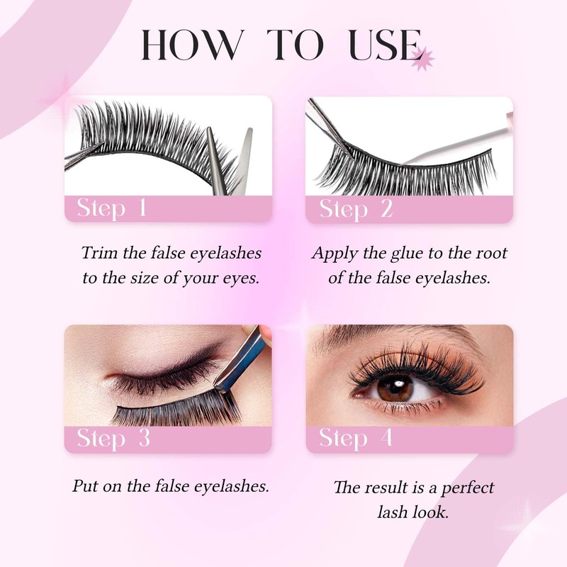 - 1. HALF LASH KIT This half set includes a pair of eyelashes, one eyelash glue and one eyelash tweezers. This three-piece set is a perfect set for beginners, you can DIY beautiful eyelashes at home.