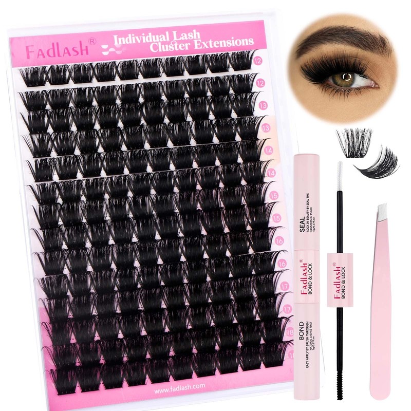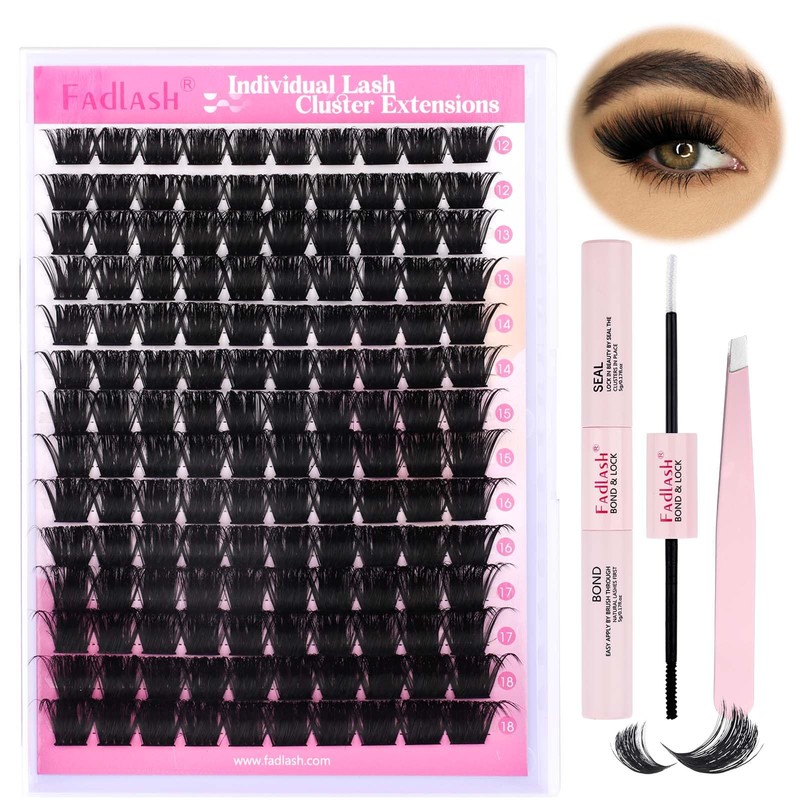 FADLASH Lash Extension 200D DIY Kit Volume Fluffy 0.07D Curl Lash Clusters with Lash Bond and Seal for DIY Eyelash Extension at Home for Self Use(200D, 12-18mm)