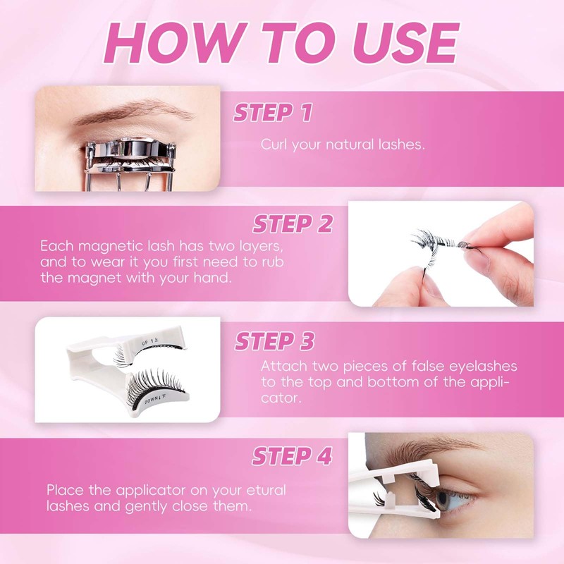 - New Magnetic Lashes Kit: This magnetic eyelashes kit includes 2 pairs of magnetic eyelashes and 1 piece of magnetic eyelashes applicator. With them, you can wear the magnetic lashes anytime.