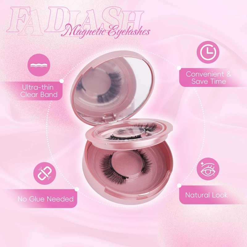 FADLASH Magnetic Eyelashes with Applicator Natural Look Magnetic Lashes Reusable 2 Pairs False Eyelashes Kit Easy to Wear and Remove (604+079)