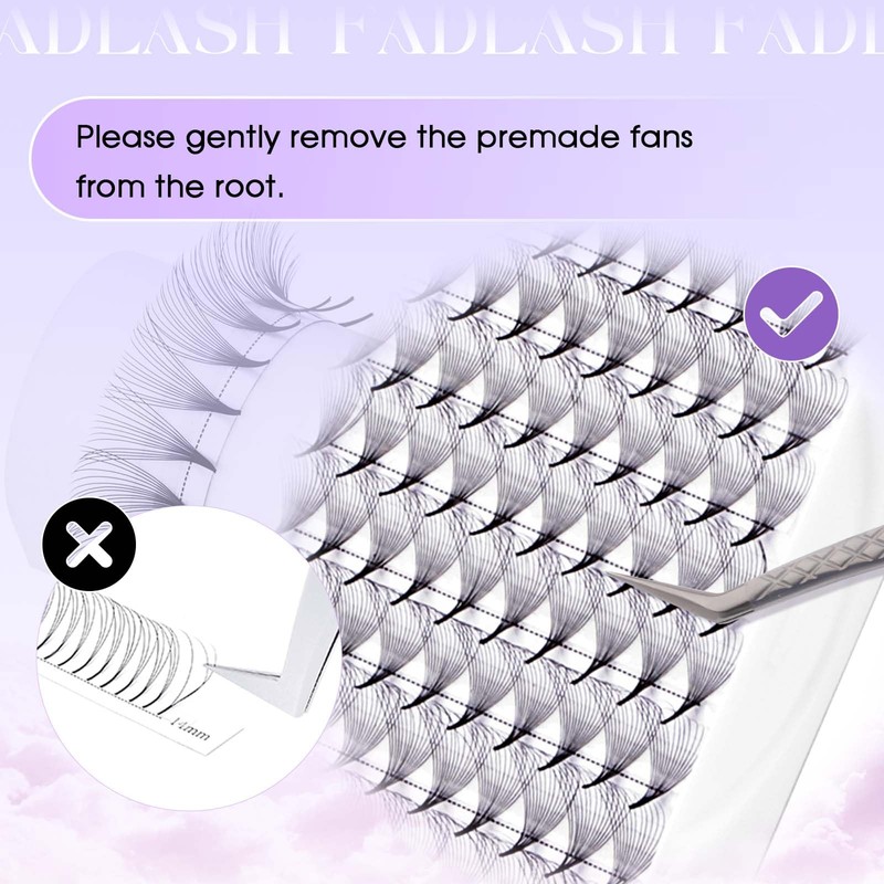 - đăUpgrade Premade Lash FansăThese premade fans eyelash extensions ensure long-lasting durability. Elevate your beauty routine with lashes that maintain their pristine condition, offering a long-lasting glamorous touch.