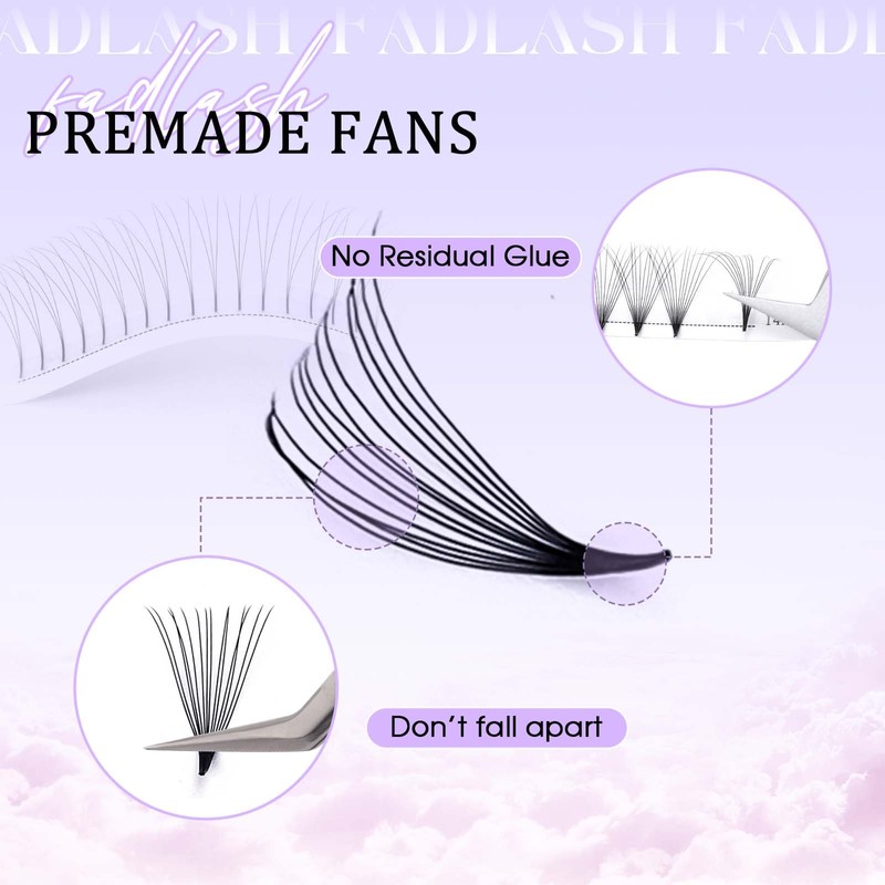 - đăUpgrade Premade Lash FansăThese premade fans eyelash extensions ensure long-lasting durability. Elevate your beauty routine with lashes that maintain their pristine condition, offering a long-lasting glamorous touch.