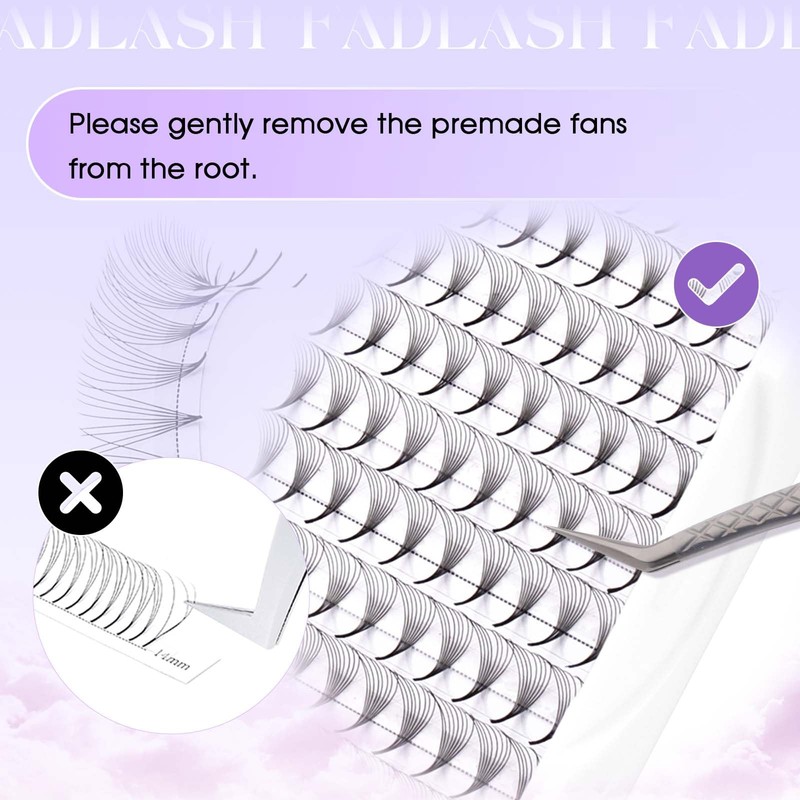 ăNo Residue & KinkăAll of our premade fans eyelash extensions fans are slim for easy application and do not have a lot of adhesives, comfortable to wear.