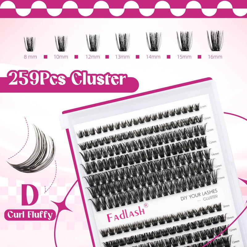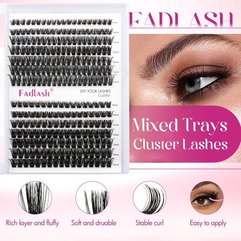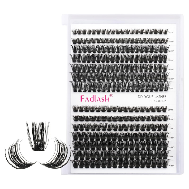 Fadlash Wispy Cluster Lashes DIY Individual Lashes 0.07 D Curl 8-16mm 80D Lash Extension Reusable Soft Fluffy Eyelash Extensions