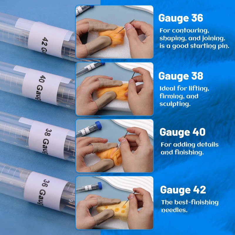 - Complete Needle Felting Kit: Our Wool Felting Needles come in a convenient box set, including – 50 x ultra-fine(42 gauge), along with 1 pair of finger cots (random color),1x metal storage box, Meet your needs for one style of Wool Felting Needles without having to buy extra sizes