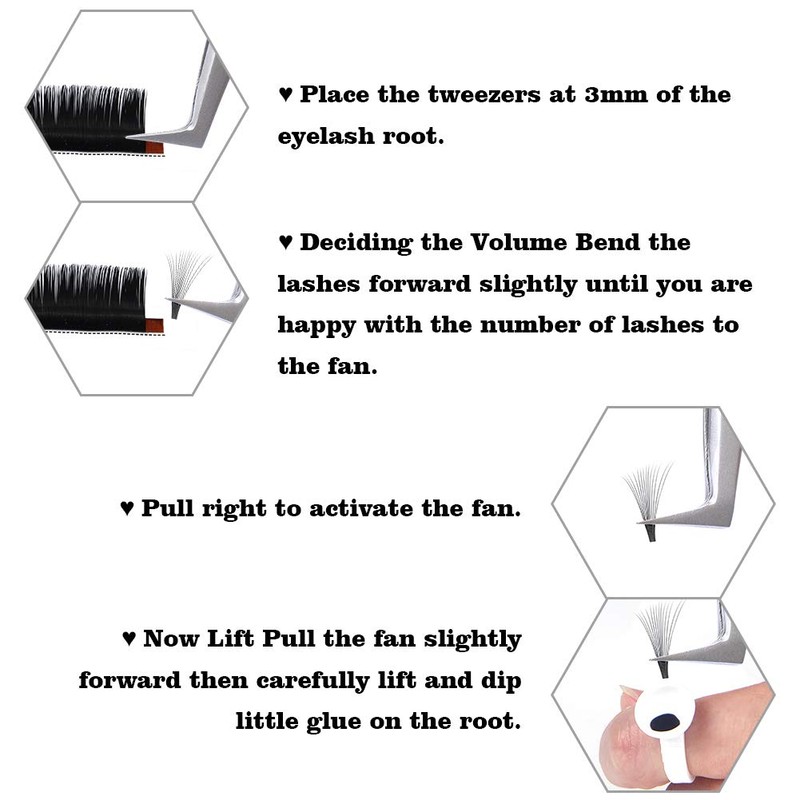 - Specially treated curl: these self-fanning volume eyelash extension semi-gloss eyelashes have been double heated during production to achieve the flexibility that resembles a natural eyelash, so that the perfect swing shape is maintained and the swing is not easily lost.