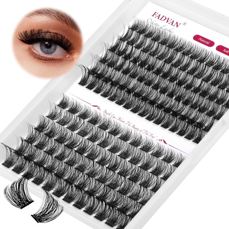 FADVAN Lash Clusters Wispy Eyelash Cluster, 156PCS C-Curl Individual Cluster Lashes, 10-16 mm Mixed Natural Look Eyelash Extensions with Thin Lash Band