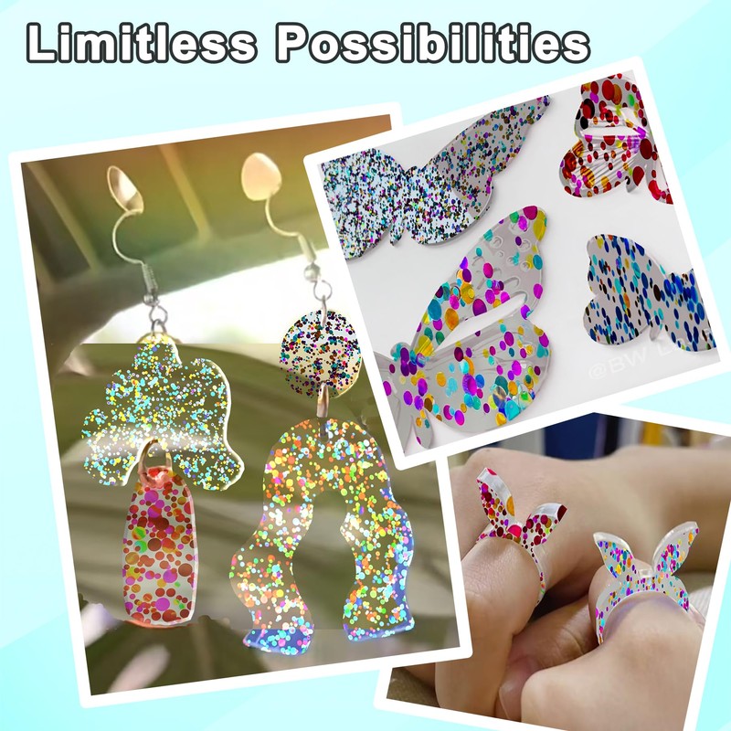 - Iridescent Dots Glitter: Holographic glitter dots are embedded in clear acrylic, shifting colors from different angles for a dazzling, multi-dimensional effect in your projects