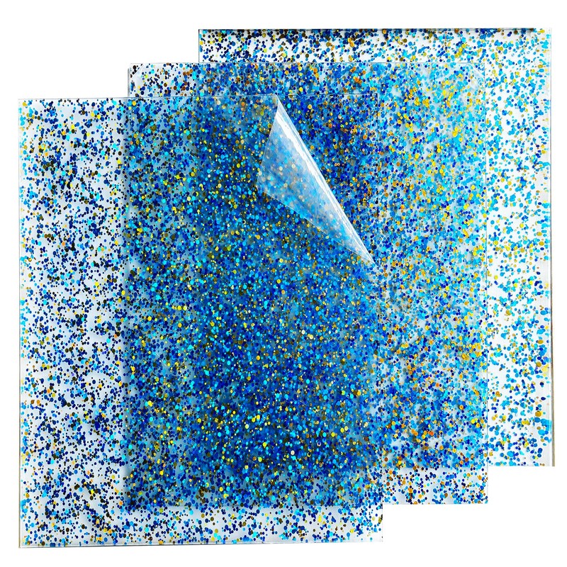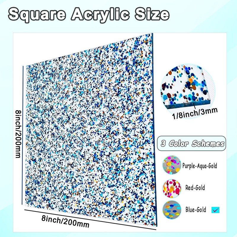 FaeliKnise Confetti Dot Glitter Acrylic Sheets 8" x 8" Clear Sparkly Cast Acrylic Sheet 1/8 Thick for Laser Cutting and Engraving CNC (3, Blue-Gold, 8"x8")
