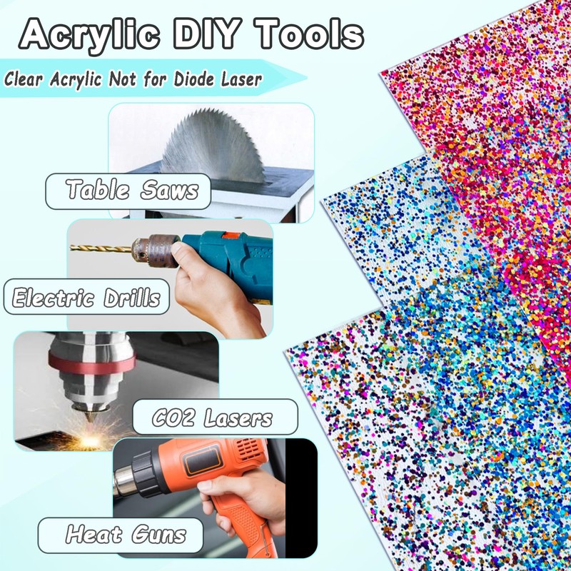- Easy Customization: The clear acrylic shows what’s behind, while colorful glitter adds sparkle. Tailor these sheets to any shape or size with CO2 lasers