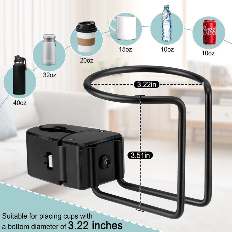 • **3. Universal Fit**: This cup holder is designed to hold cups with a base diameter up to 3.22 inches, making it ideal for coffee mugs, thermos cups, wine glasses, beer cans, and other drinks.