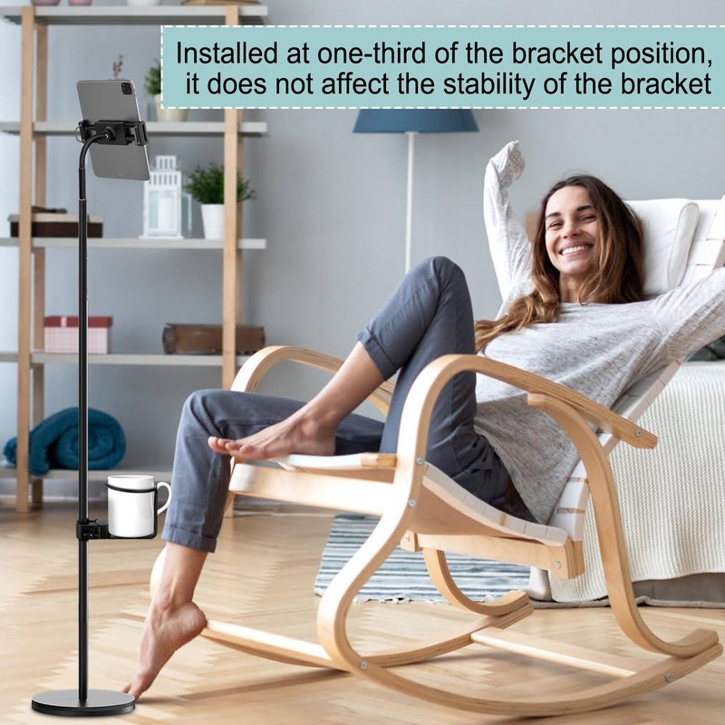 • **1. Simple Design**: This clamp-on cup holder is easy to use and perfect for mounting on floor phone stands or tablet stands. Whether you're live streaming on TikTok or binge-watching your favorite show, it keeps your coffee, drinks, or beer within reach, freeing up your hands.