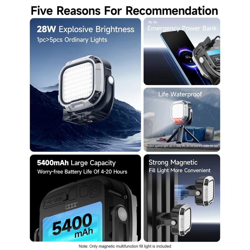 [Long-lasting Battery]Designed for outdoor use, this portable video light comes with a built-in 5400mAh rechargeable battery, ensuring extended usage. Additionally, it supports type-C USB power supply, providing convenient on-the-go charging options.