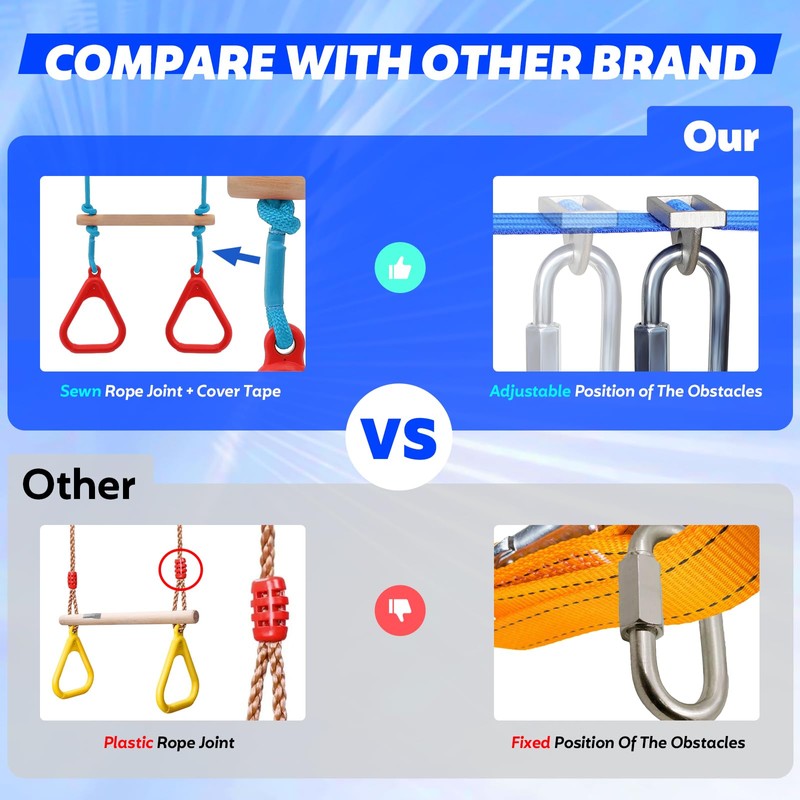 FAHKNS Ninja Warrior Obstacle Course for Kids, 65 FT Durable Slackline with 11 Obstacles-Swings, Monkey Bars, Arm Trainers and More, Weatherproof Outdoor Obstacle Course for Backyard,3+ Years Old