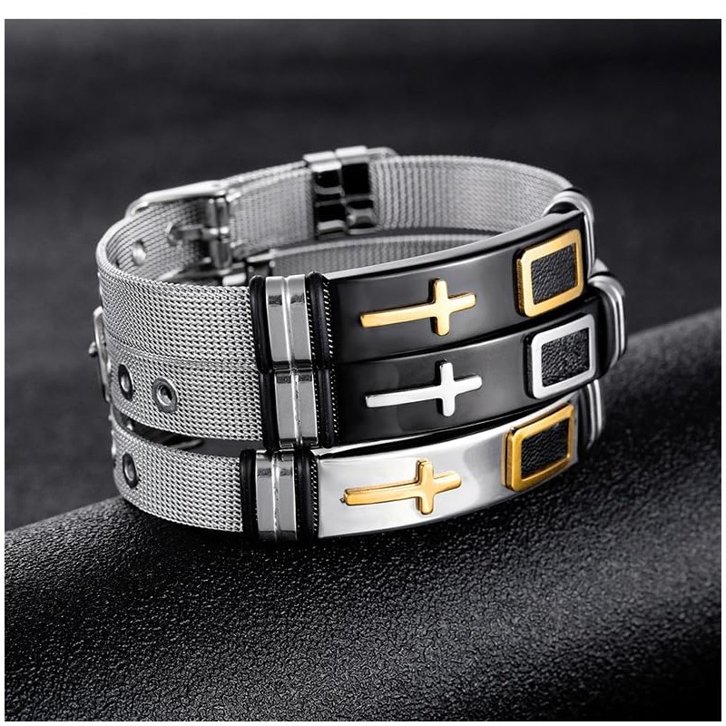 - 【Adjustable Cross Design】No more worries about sizing! Our bracelets are adjustable in length to fit any wrist size. Flexible mesh band with modern cross accents. Easy one-handed clasp for quick wear and removal.