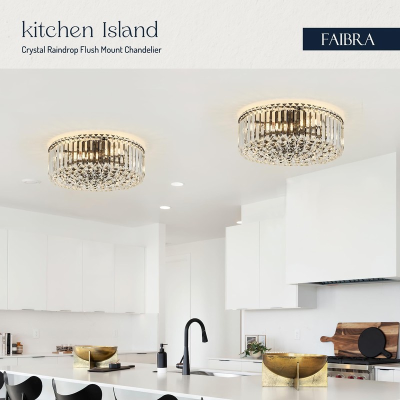 Faibra 17.3" Black K9 Crystal Raindrop Flush Mount Ceiling Light, Modern Chandelier, Round Luxury Light Fixture for Dining Room, Bedroom, Hallway, Kitchen Island & Living Room