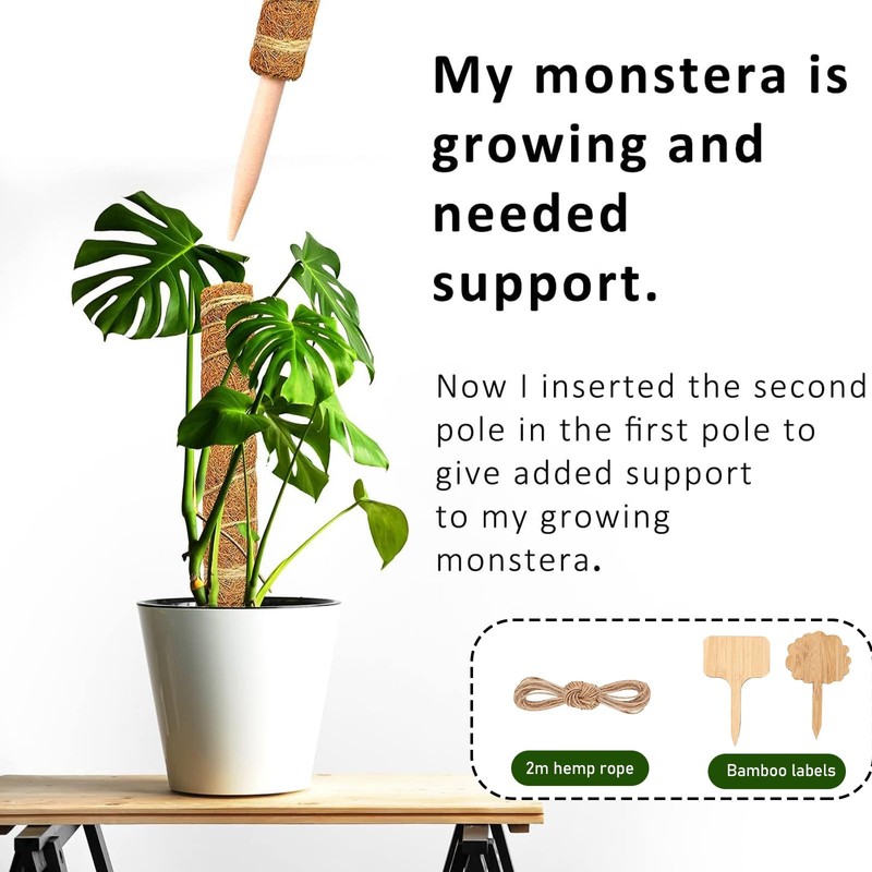 - Package contents: In addition to the moss pole, 1 x 2 metre long hemp rope and two pieces of bamboo labels. You can choose a suitable attachment method according to different plants and different environments, which is more stable and beautiful.