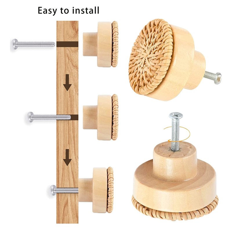 ★The rattan chest of drawers knobs is hand-woven with high-quality wooden handle and 100% natural rattan, which is beautiful, durable and comfortable to touch.