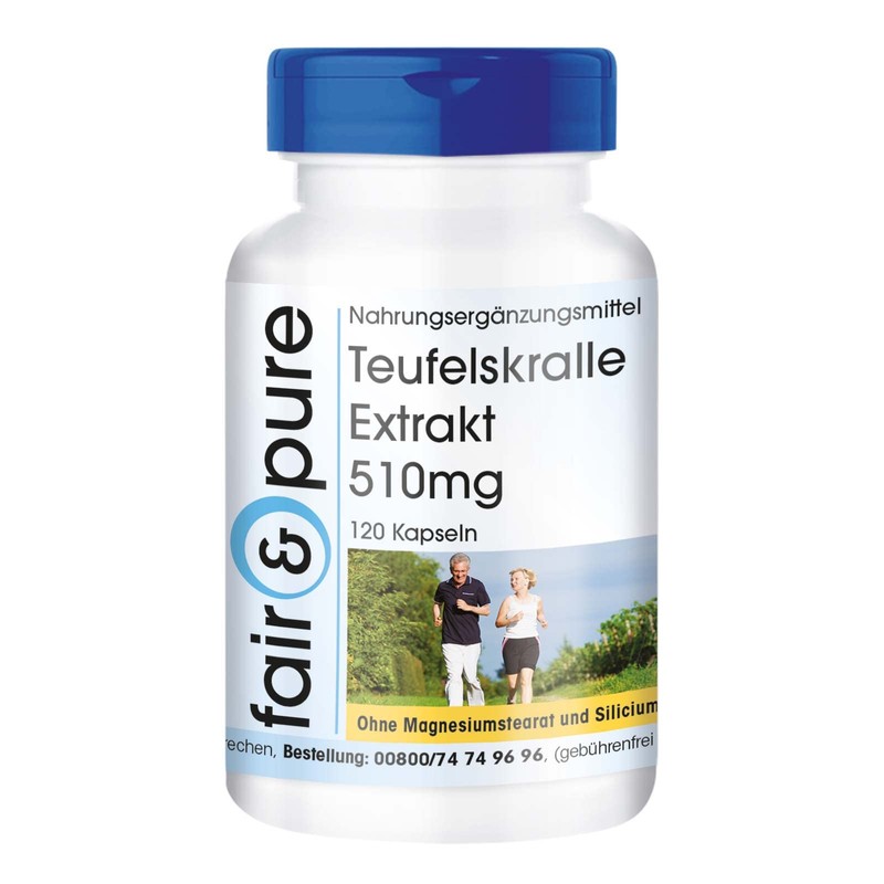 - For your health: Devil's Claw Extract 510 mg – 120 Capsules – Vegan, 1.2% Harpagoside – The product is gluten-free, fructose-free and lactose-free as well as free from magnesium stearate, silicon dioxide, dyes, flavours and preservatives