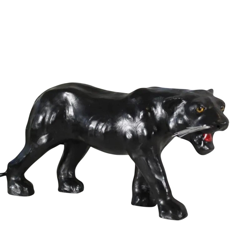 The meticulous craftsmanship is evident in every curve and contour, capturing the sleek, powerful essence of the panther. The hand-painted finish brings the sculpture to life, highlighting the animal's expressive features and muscular form.