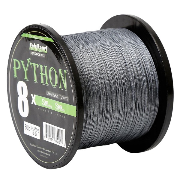 fairiland 8 Strands Braided Fishing Line, Solid Weaving 8X Braided Line for Smooth Casting, Strong Abrasion Resistance, High Sensitivity and Zero Stretch, 21-80 Test-LB, 328yd-0.32mm-50lb, Grey
