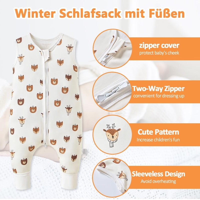 Fairy Baby Sleeping Bag with Feet 2.5 Tog Cotton Sleeping Bag Baby All-Year Sleeping Bag with Legs Toddler Pyjamas for Boys and Girls