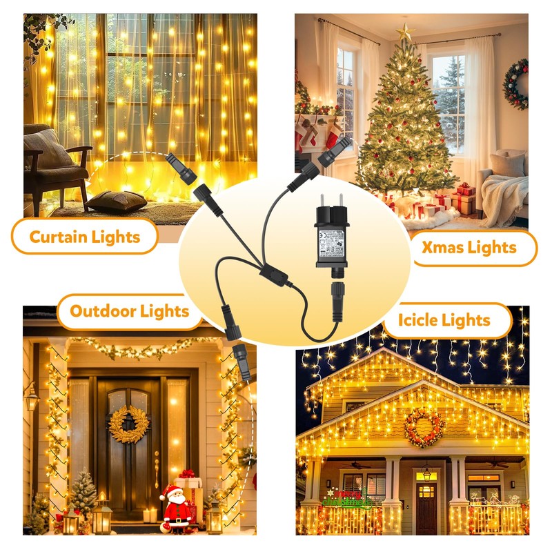 - [Widely applicable]: This string light splitter can efficiently integrate multiple fairy lights and reduce the need for plugs! Suitable for all types of LED fairy lights, garden lights, G40 globe lights, icicle lights, net lights, curtain lights, most Xmas string lights, etc. Each of our products undergoes rigorous quality testing to ensure that we provide you with a decorative experience that is both safe and beautiful.