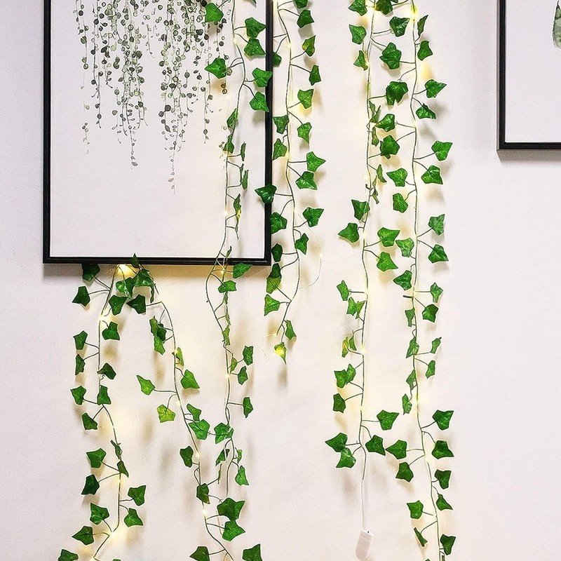 - 【Fairy Lights with Artificial Vines】Give a lush leafy charm and forestry appeal to your décor and designs with these leaf fairy lights. Mimicking the realistic leaf look and color, these vines fairy lights are perfect for wall hanging, wedding table decor, craft projects, decorating gift baskets, party decorations and many more DIY projects.