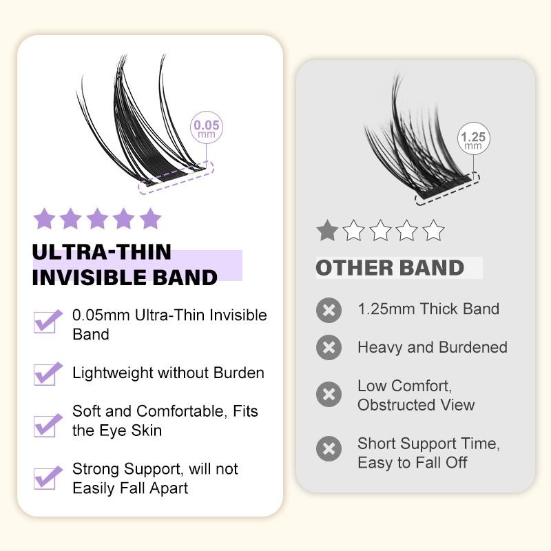 „ÄêFeather-Light Comfort„ÄëHandmade with high-quality materials. Clear band better fit to your eyelids. Individual lashes kit with waterpoor Bond&Seal are long lasting,giving you the perfect fluttery lashes.
