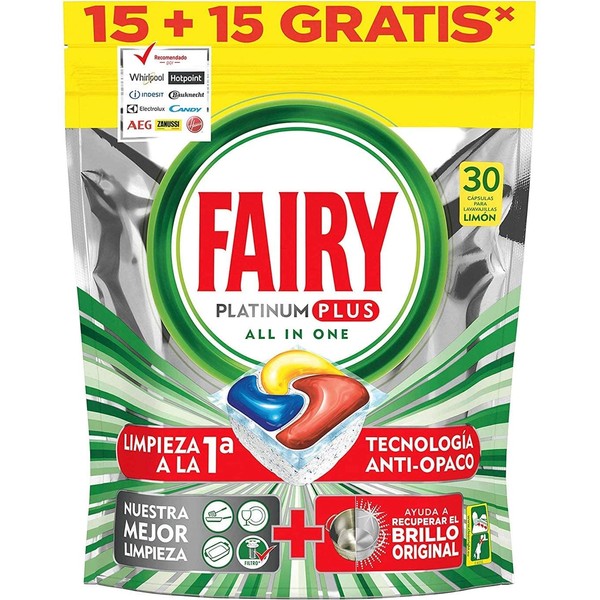 Fairy Platinum Plus Dishwasher Tablets All-In-One 30 Capsules Lemon, Lemon Dishwasher Tablets