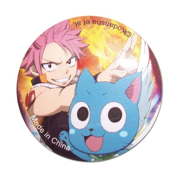 Offically licensed Fairy Tail 1.25'' button featuring the characters Natsu & Happy . (c)Hiro Mashima . KODANSHA/Fairy Tail Guild . TV TOKYO. Licensed by Kodansha through Funimation Productions, Ltd. All Rights Reserved