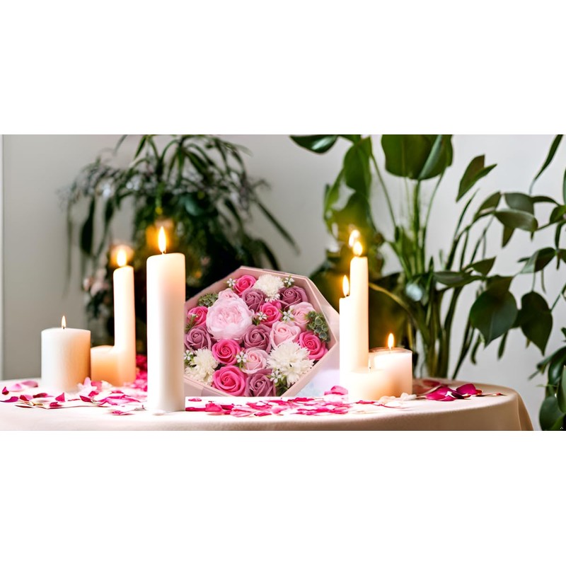 - Incluye una exquisita selección de flores artificiales, como peonías , rosas y claveles, cuidadosamente dispuestas para crear un hermoso regalo.