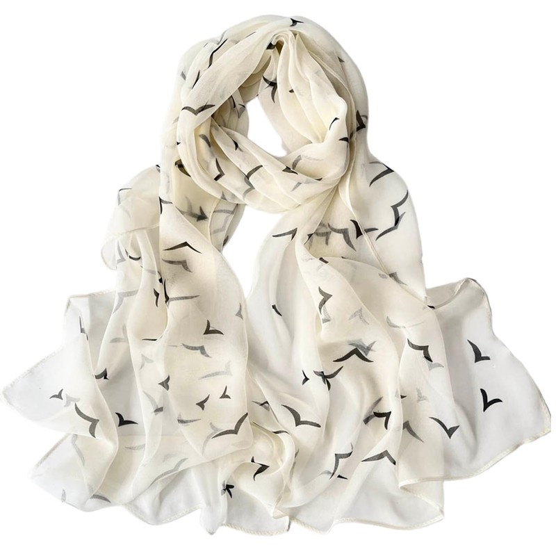 FAIRYGATE Chiffon Scarf Women's Silk Scarves Hand Washable Elegant Seagulls Printed Long Shawl Soft Wrap All Season Versatile and Multifunctional B7122