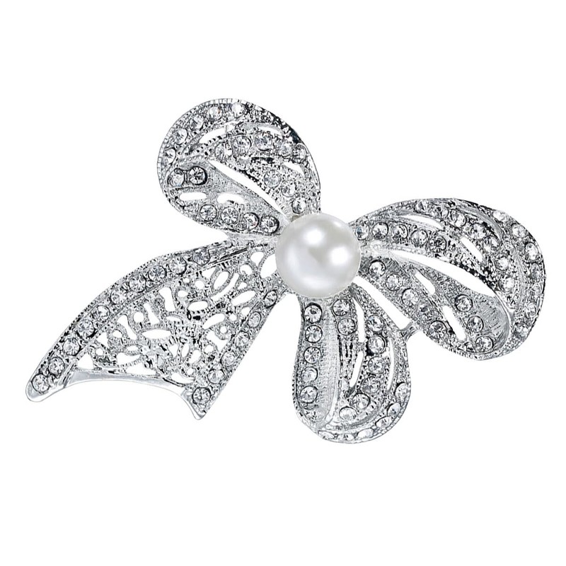FAIRYGATE Crystal Brooch Rhinestone Bow Brooches Pins Dress Elegant Anti Light Fashion Gift for Women Ladies Clothes Accessories, B4617