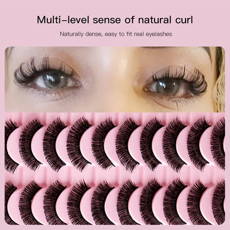 FAIRYGATE Eyelashes Strip Lashes Natural Look False Eyelashes Strip Lash D Curl Fluffy Wispy Faux Mink Lashes 10 Pairs Volume Curly Eyelash Pack B5217