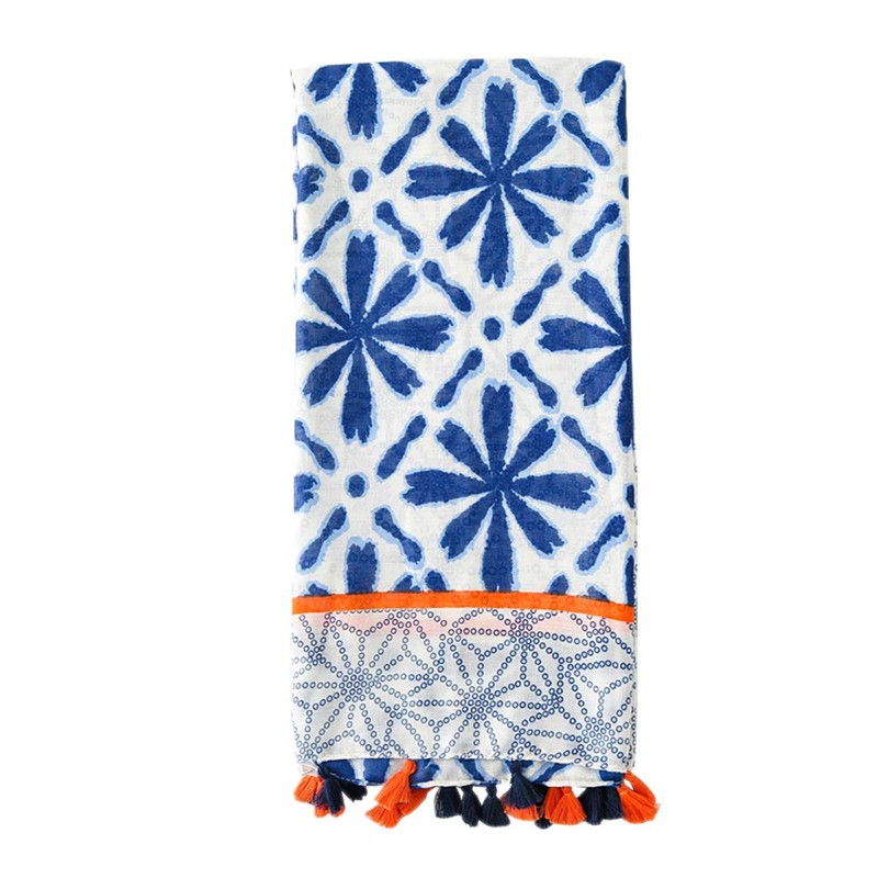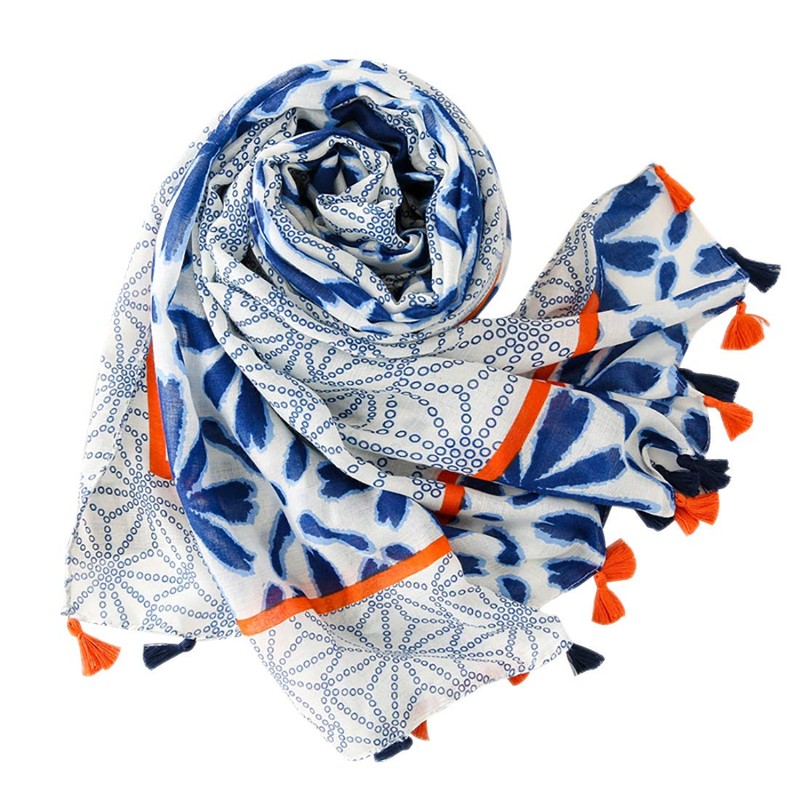 FAIRYGATE Scarf Women's Blue XXL Mixed Patterned Micro Tassel Soft Stole Neckerchief Lightweight Scarf for All Season Oversized Elegant Scarves & Shawls for Women 34226, 90 x 180 cm