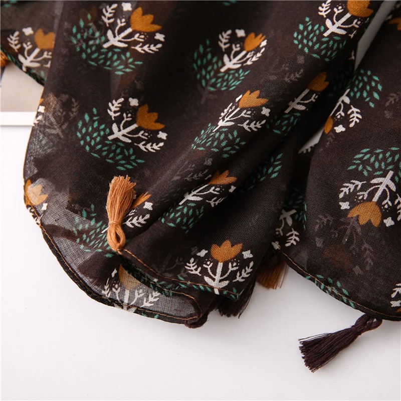 FAIRYGATE Tassel Scarf Women Scarfs for Women Lightweight Floral Print Cotton Scarves and Wraps for Holiday Shawl 84011