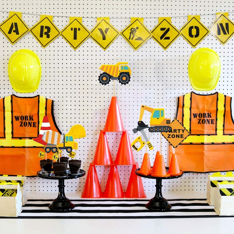 - Made of premium quality cardstock, Double-sided and Reusable. The construction zone party decorations are suitable for any age birthday party!