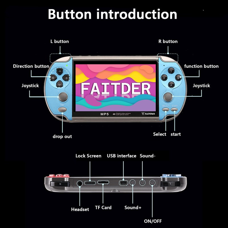 FAITDER-X7-4.3-inch 8GB Handheld Portable Video Game Console Built-in 3000+ Games, Handheld Linux Open Source-able System, Multi-Functional Music Movie(Blue)