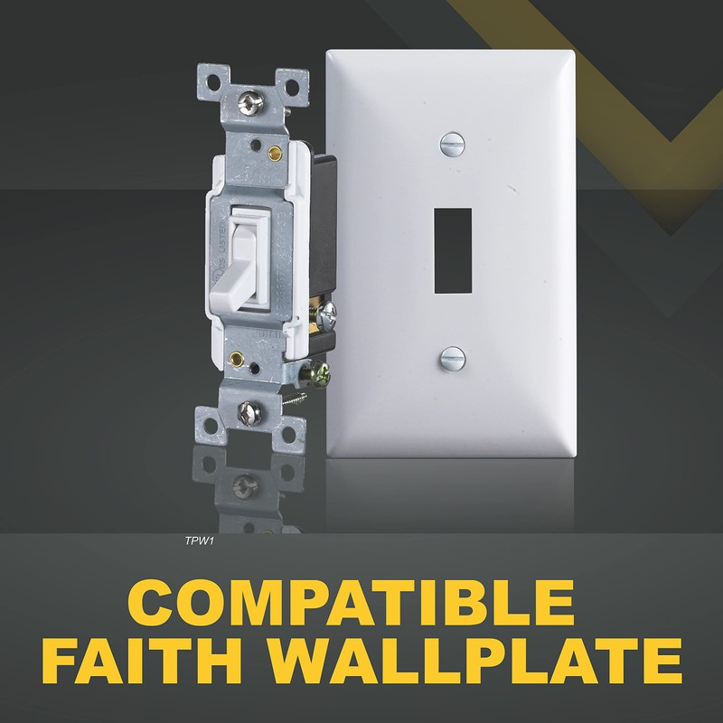 Faith [10-Pack] 3 Way Toggle Switch White Residential Grade Standard Wall Electrical Switch, 15 Amp, Grounding Screw, 120V